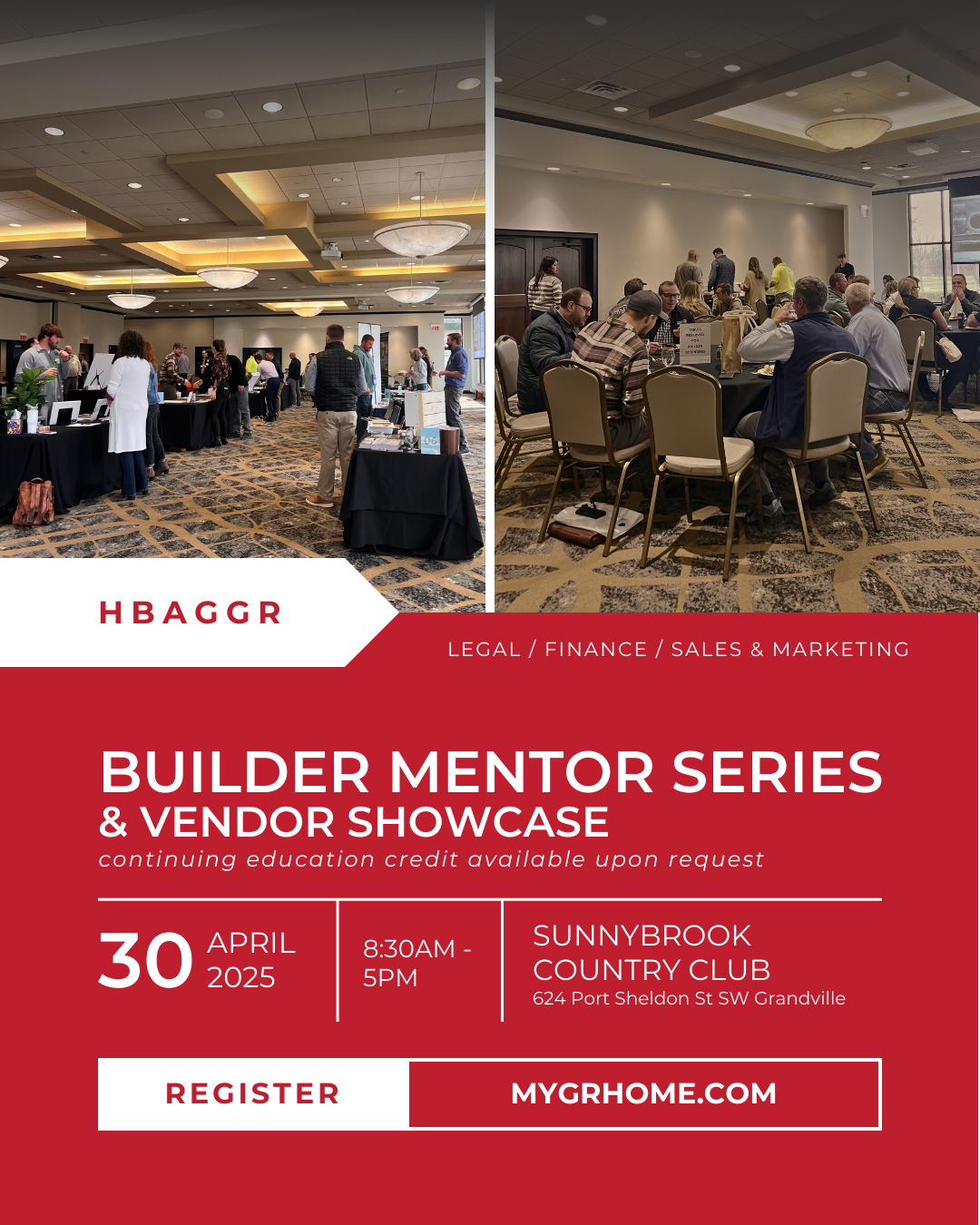 HBA GR Builder members are invited to engage in an open dialogue with a panel of your builder peers in areas of: Legal, Finance, and Marketing [continuing education credit is available upon request]. Come with questions!